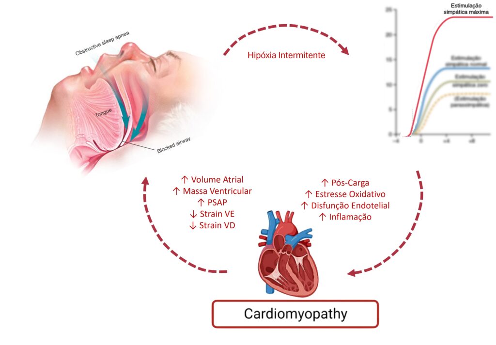 A hipoxemia intermitente também aumenta a atividade do sistema nervoso simpático e intensifica a suscetibilidade do coração ao estresse oxidativo. Importante destacar que a restauração da normóxia pode reverter a fibrose perivascular cardíaca e o remodelamento da matriz extracelular previamente induzidos — sugerindo reversibilidade nos danos cardíacos relacionados à AOS.