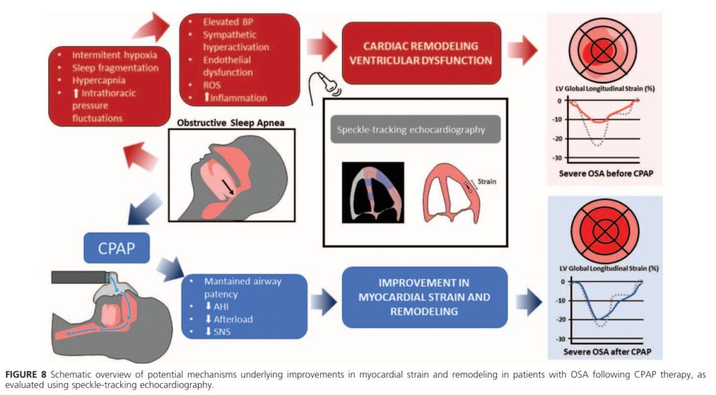 Evidências anteriores já mostravam que a AOS está associada a redução do LV-GLS, especialmente nos casos graves. Os achados desta publicação confirmam que o CPAP melhora significativamente o LV-GLS, embora a FEVE permaneça inalterada. Assim, o LV-GLS se destaca como um marcador precoce e reprodutível de melhora induzida pelo CPAP, mesmo quando parâmetros convencionais não se alteram.