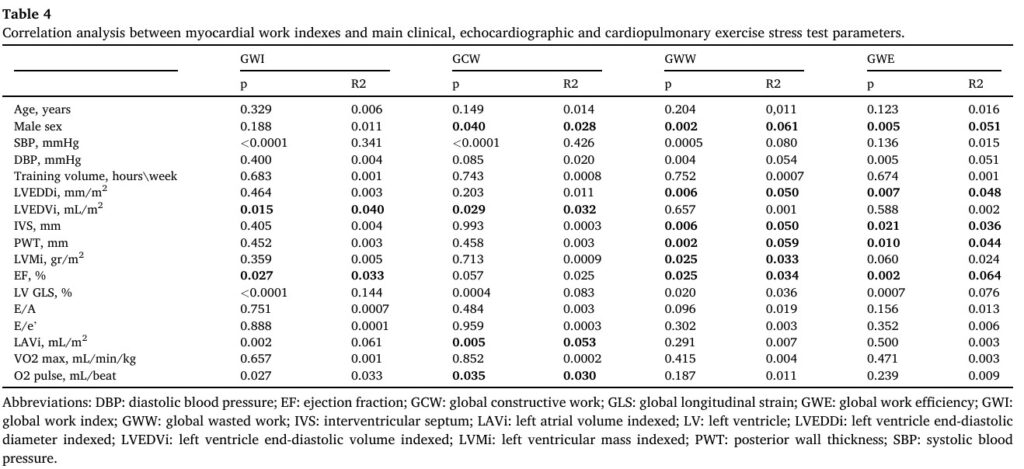 Os resultados mostram, portanto, que atletas com remodelamento cardíaco induzido pela atividade física de alta intensidade apresentam parâmetros normais de trabalho miocárdico, sem haver diferença significativa em comparação com aqueles atletas sem um remodelamento pronunciado.