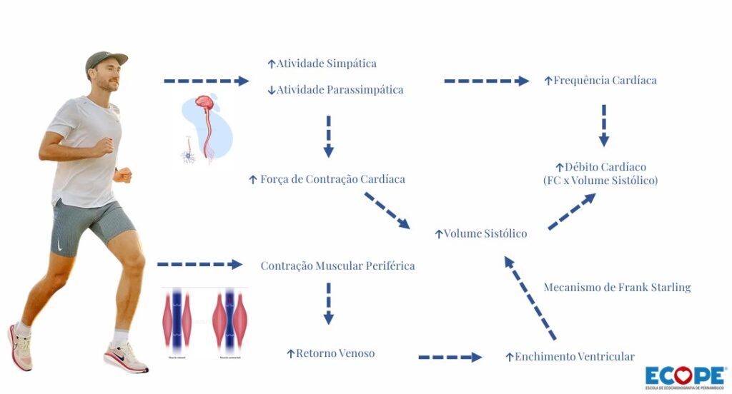 Durante a prática de atividade física do tipo endurance, há uma sobrecarga volumétrica por aumento da pré-carga resultante tanto do recrutamento de grandes grupos musculares dos membros inferiores quanto pela estimulação adrenérgica. Quando esses estímulos persistem por períodos prolongados (maratona, por exemplo), o aumento volumétrico pode induzir lesão cardíaca por estiramento acentuado das fibras miocárdicas em razão de maiores volumes diastólicos.
