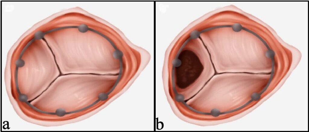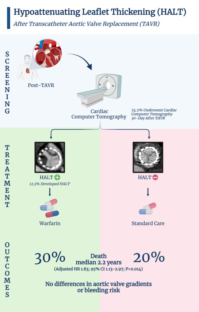 Pode se apresentar como uma hipoatenuação na espessura do folheto da bioprótese, observado na tomografia computadorizada cardíaca, com significado incerto quanto às implicações clínicas e risco tromboembólico, sendo assim considerado como um quadro leve. Contudo, aqueles pacientes com aumento dos gradientes e restrição de mobilidade do folheto podem se beneficiar da terapia anticoagulante.