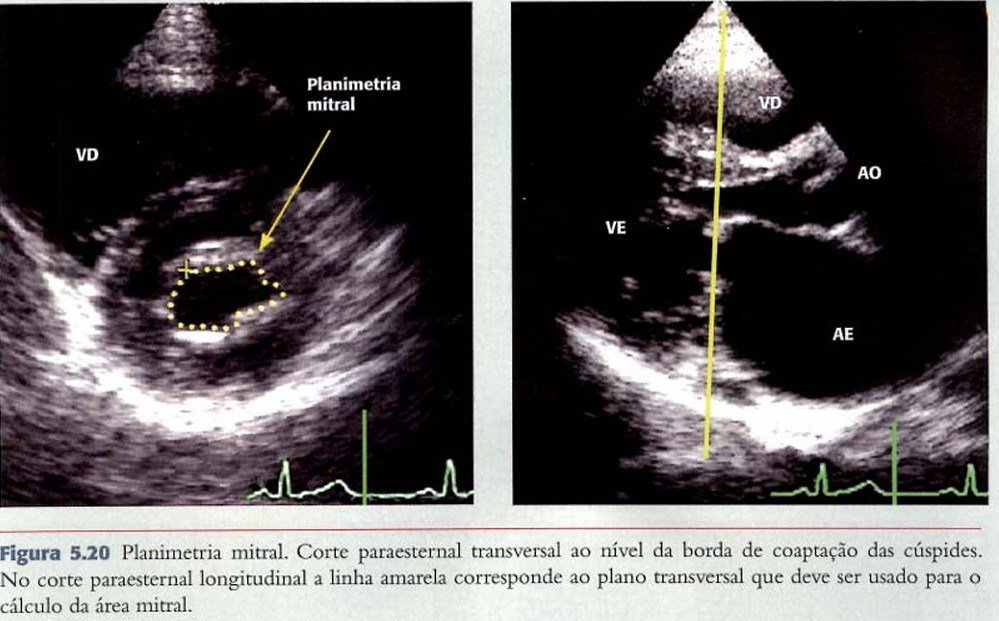 Assim, quando factível, a preferência deve ser dada pela planimetria e a utilização da ecocardiografia tridimensional deve ser recomendada. A avaliação durante esforço também pode ser útil e, sem esquecer, a análise das repercussões da valvopatia pode auxiliar na definição da gravidade da disfunção valvar.