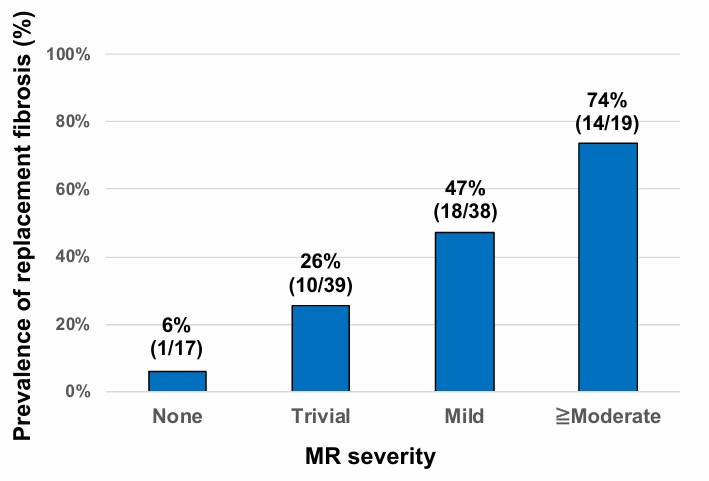 Houve uma relação direta entre fibrose e gravidade da regurgitação mitral.