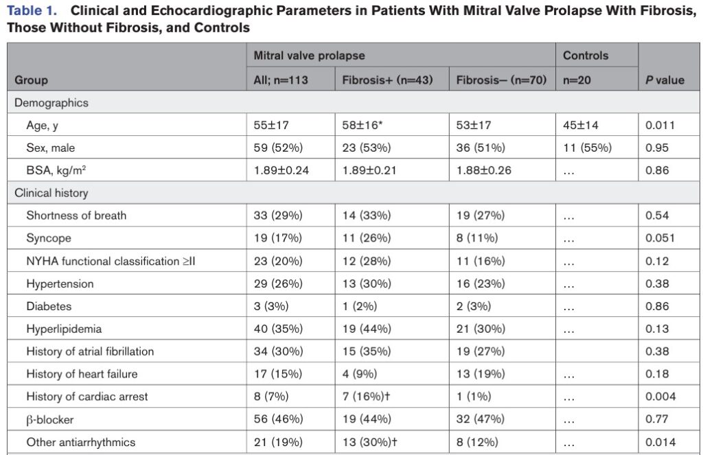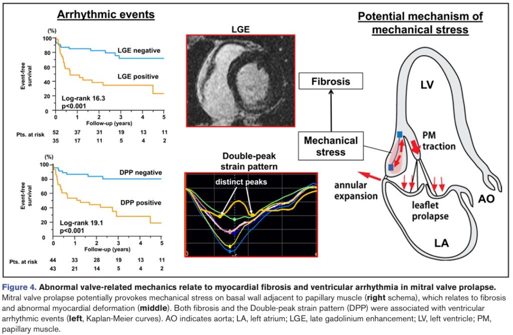 Trago um estudo que avaliou a associação dos mecanismos relacionados ao prolapso mitral arrítmico com (1) fibrose miocárdica e (2) arritmias.