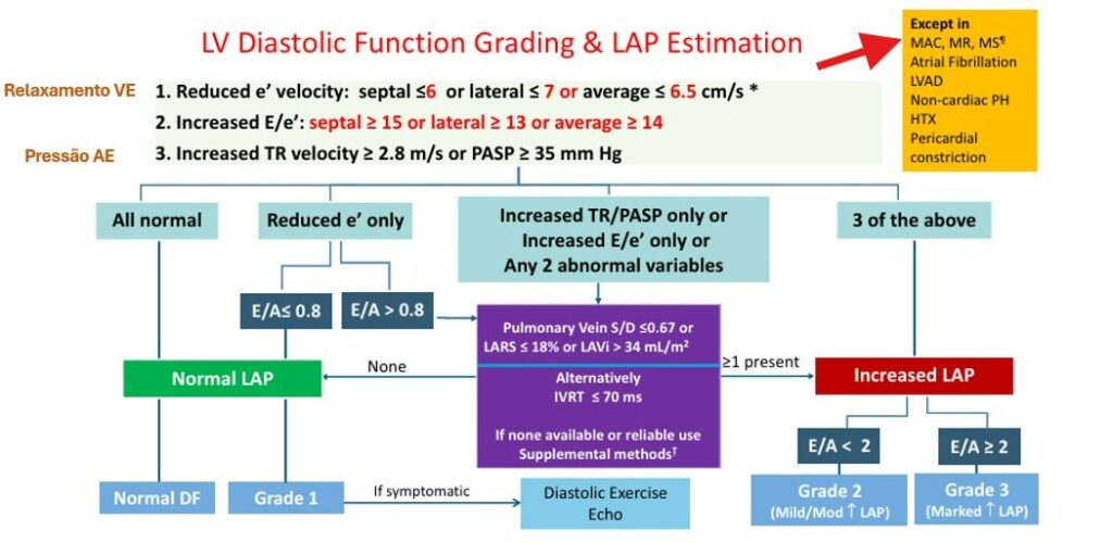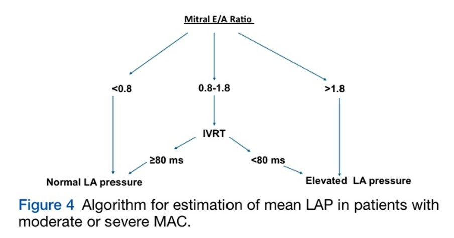 Na presença de MAC moderada ou importante, sugere-se realizar a avaliação da função diastólica seguindo um algoritmo diferente: