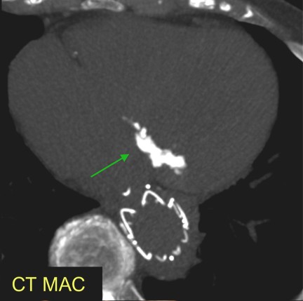 MAC é um processo degenerativo na base fibrosa da valva mitral que resulta em calcificação progressiva. Quando importante, pode causar estenose valvar significativa, bem como regurgitação. Por outro lado, a abordagem cirúrgica para troca valvar, neste contexto, pode ser bastante desafiadora e de alto risco, porém a abordagem transcateter parece ser promissora e vem sendo aplicada pela técnica “valve-in-MAC“.