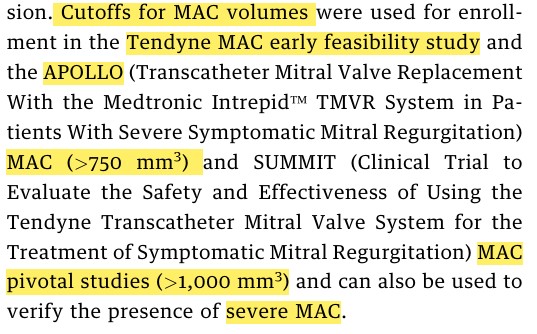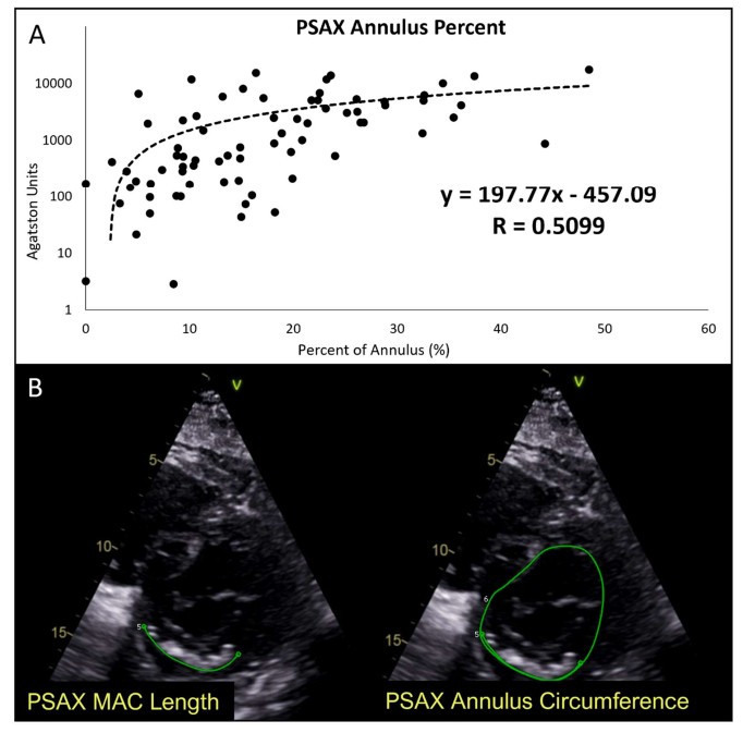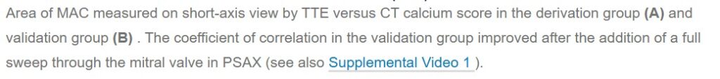 Embora as recomendações atuais indiquem que esta análise seja realizada pela extensão da calcificação em relação a circunferência do anel mitral, os resultados desta análise indicam que este tipo de abordagem não apresenta boa correlação com o escore de cálcio pela TC.