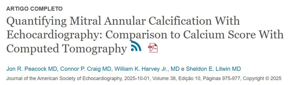 Trago mais um artigo publicado agora em outubro na JASE que comparou a quantificação realizada pela ecocardiografia com o escore de cálcio pela tomografia computadorizada.